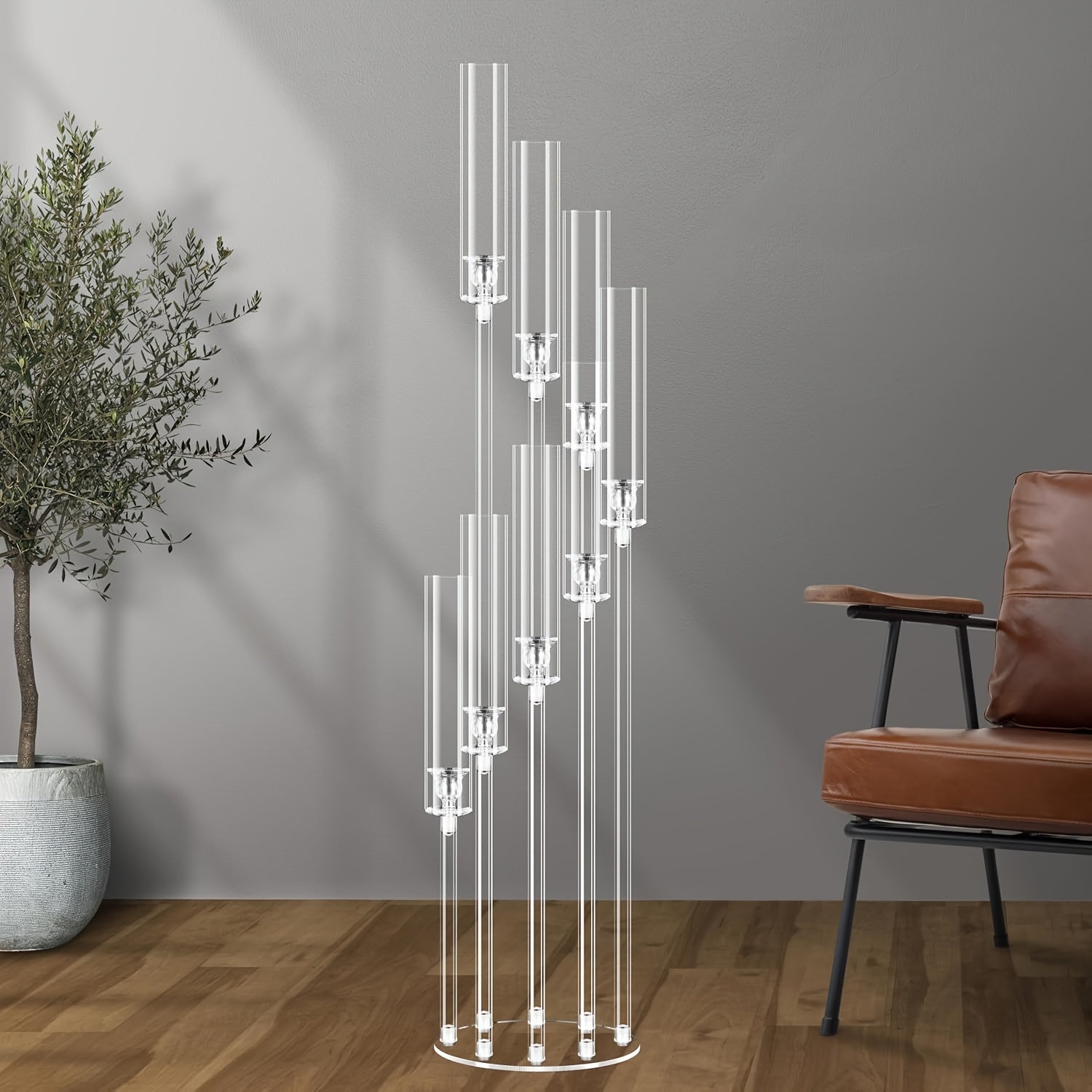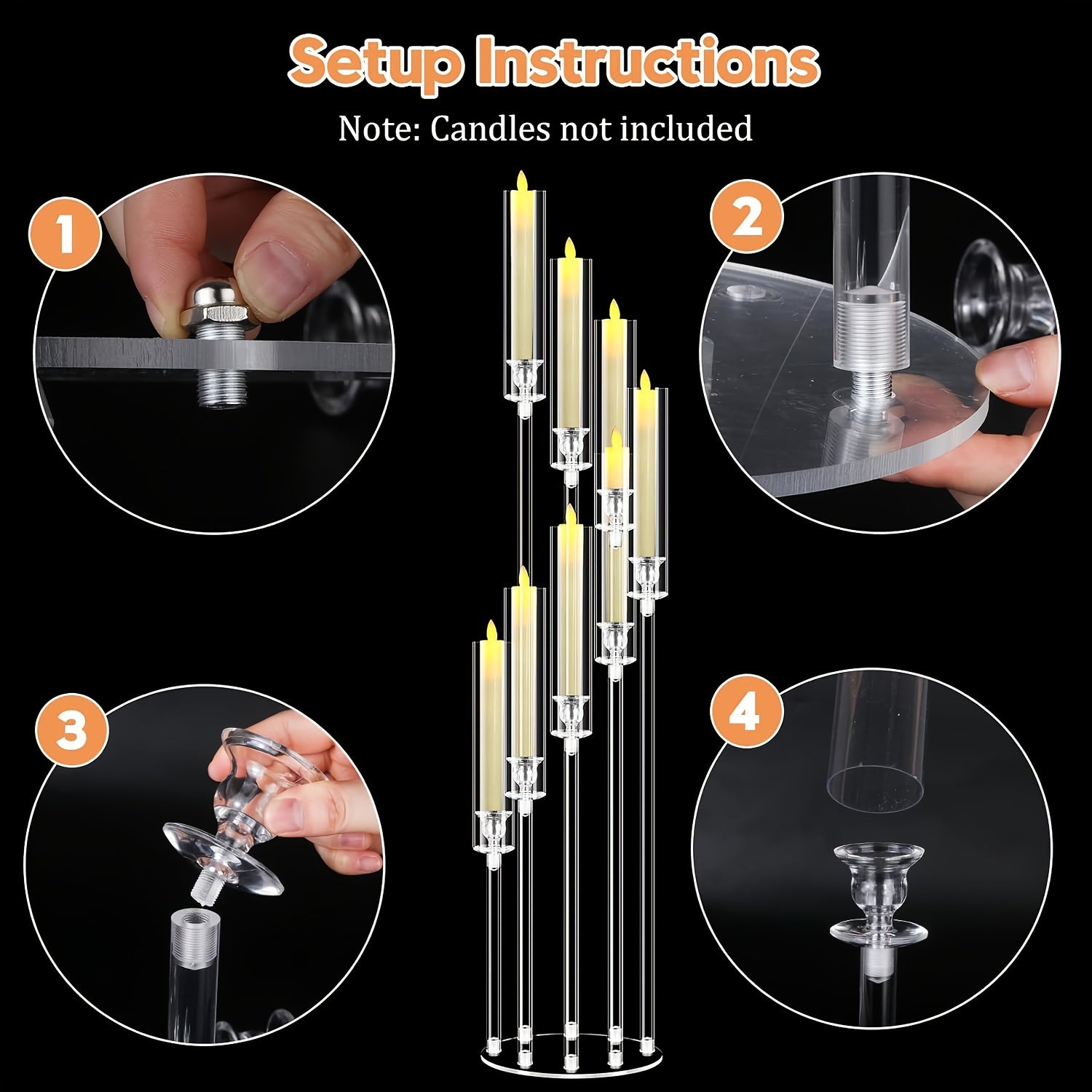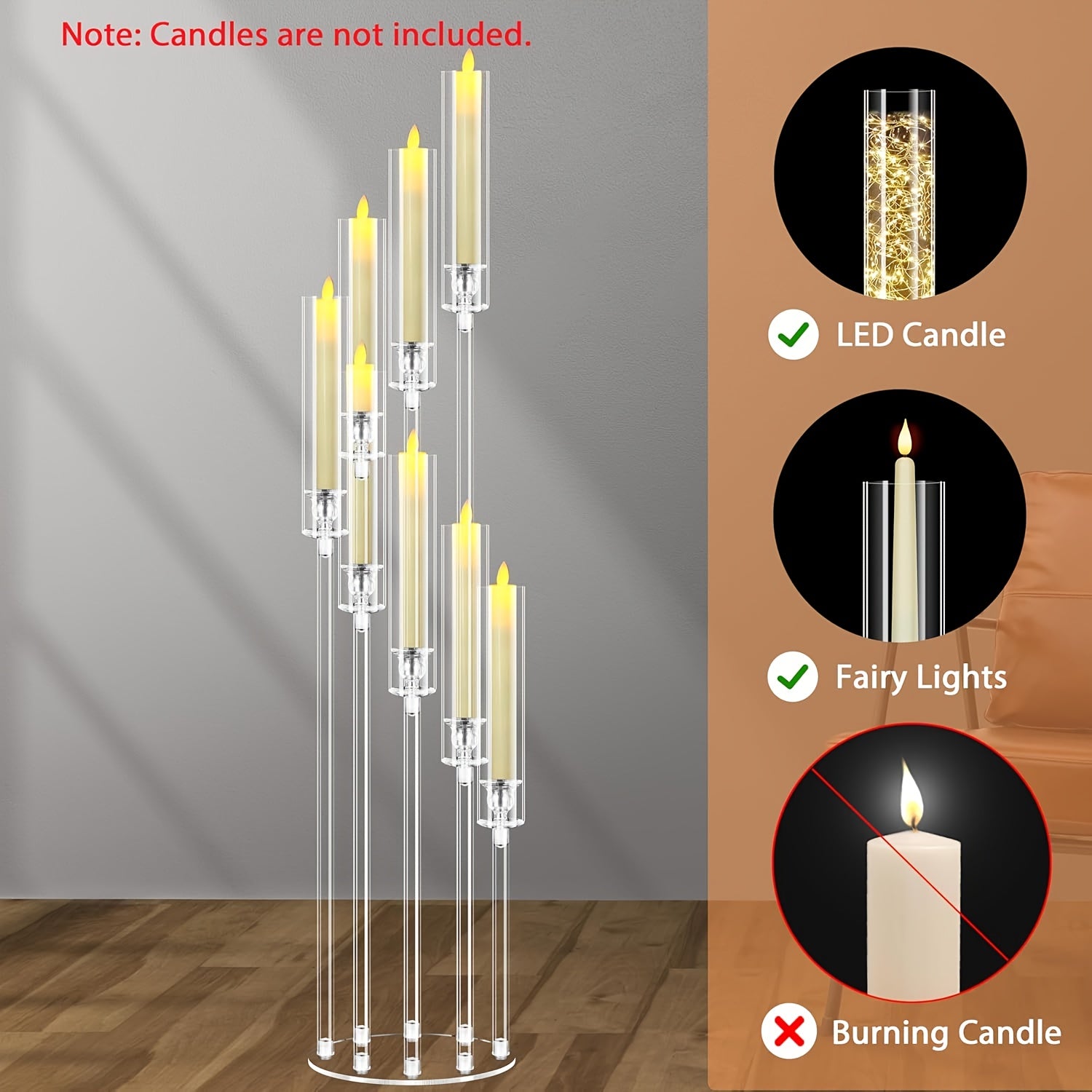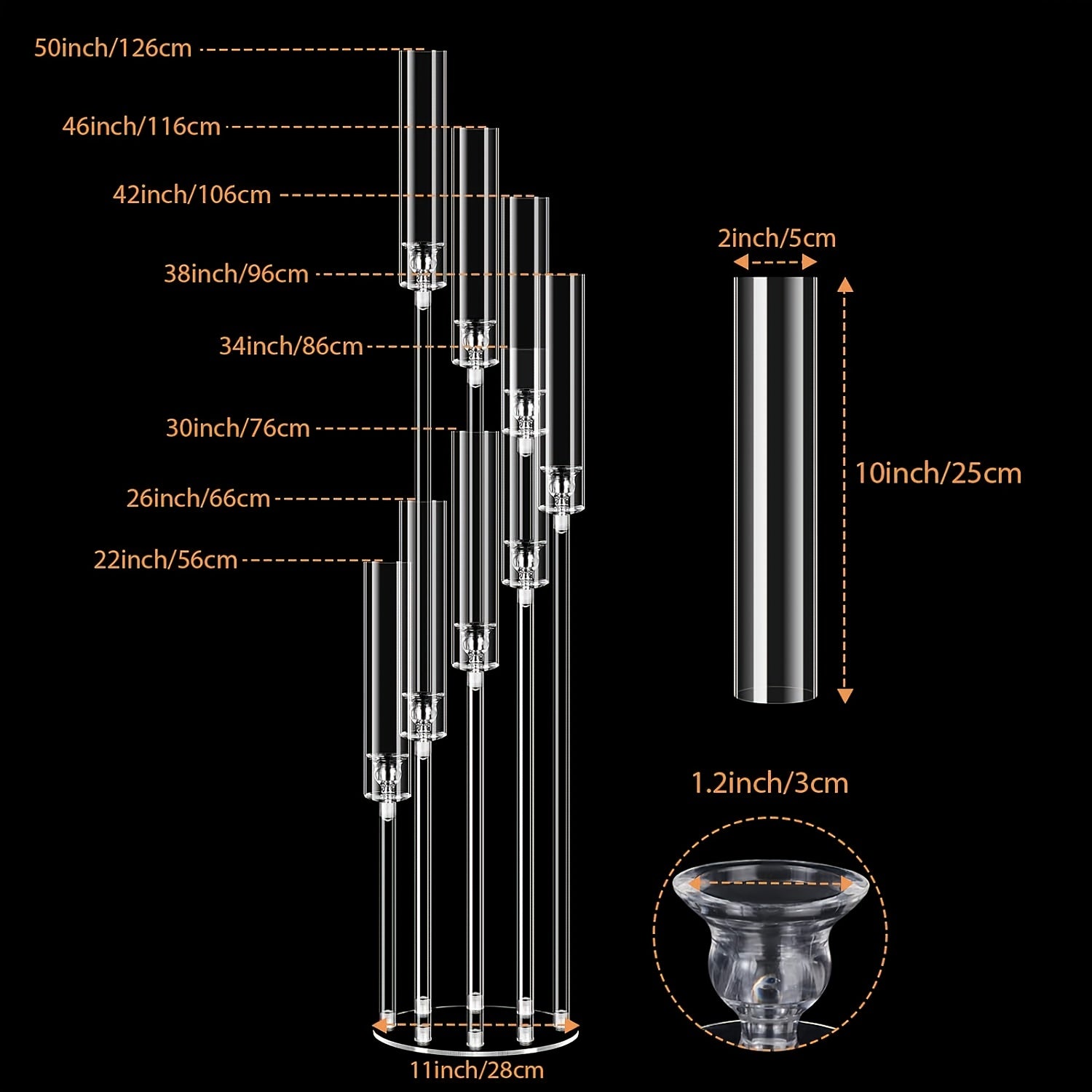 1 Set of 8 Arm 50 Inch (Approximately 127cm) Tall Acrylic Candle Holder Centerpiece, Transparent Candle Holder Suitable for Wedding Party and Home Decor