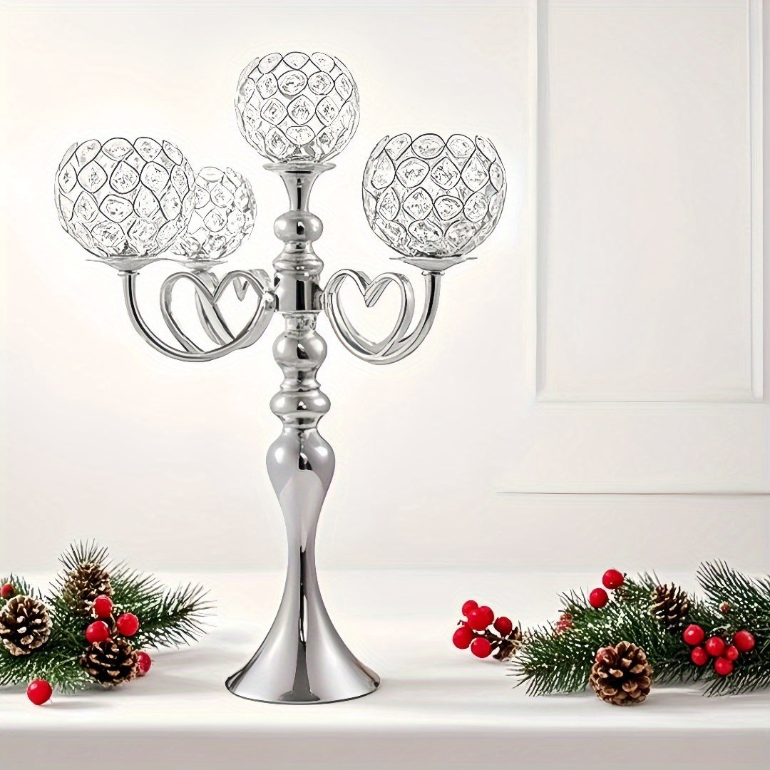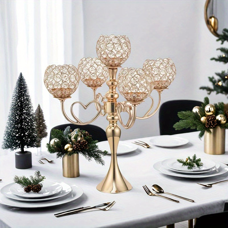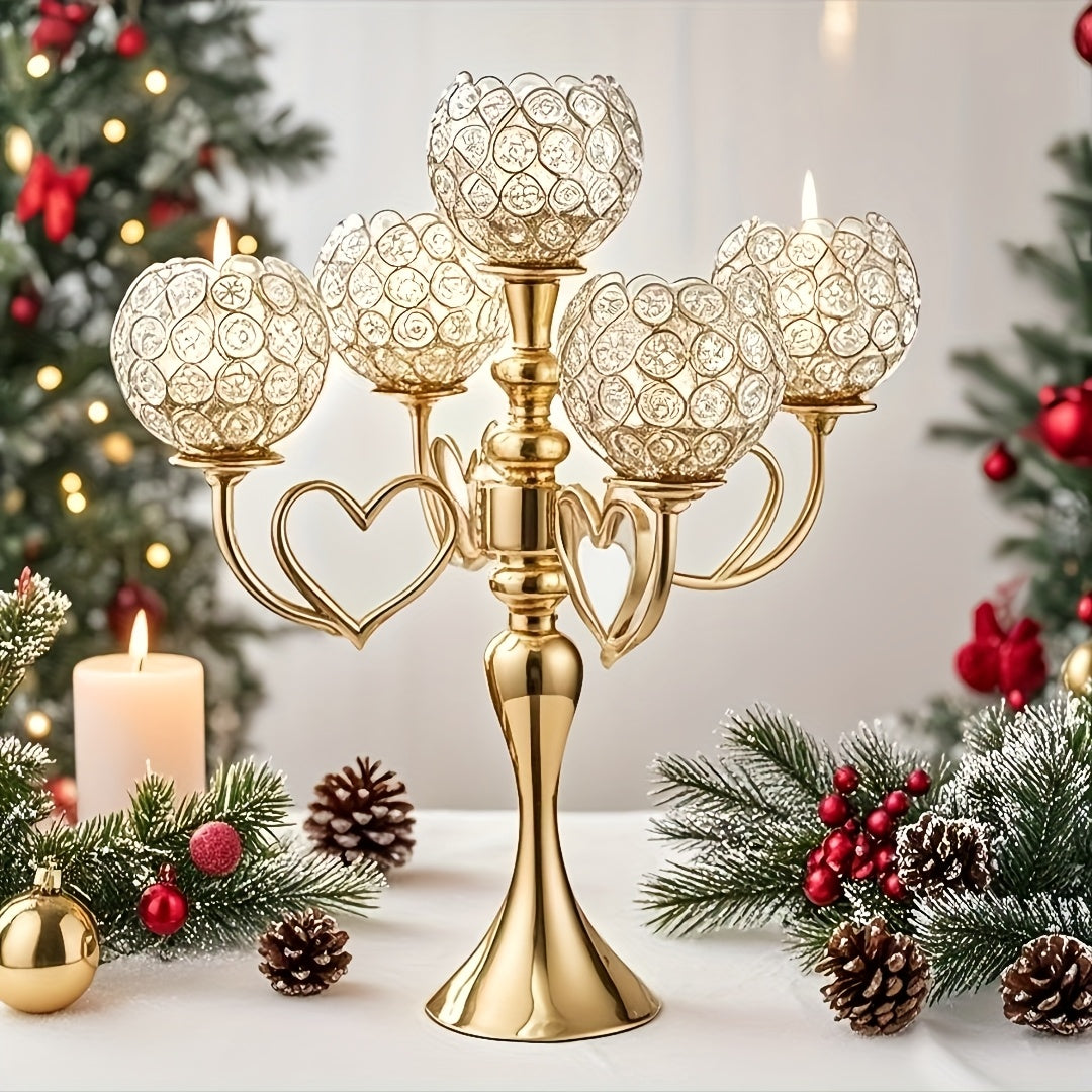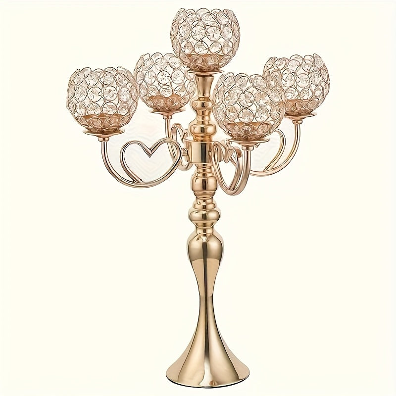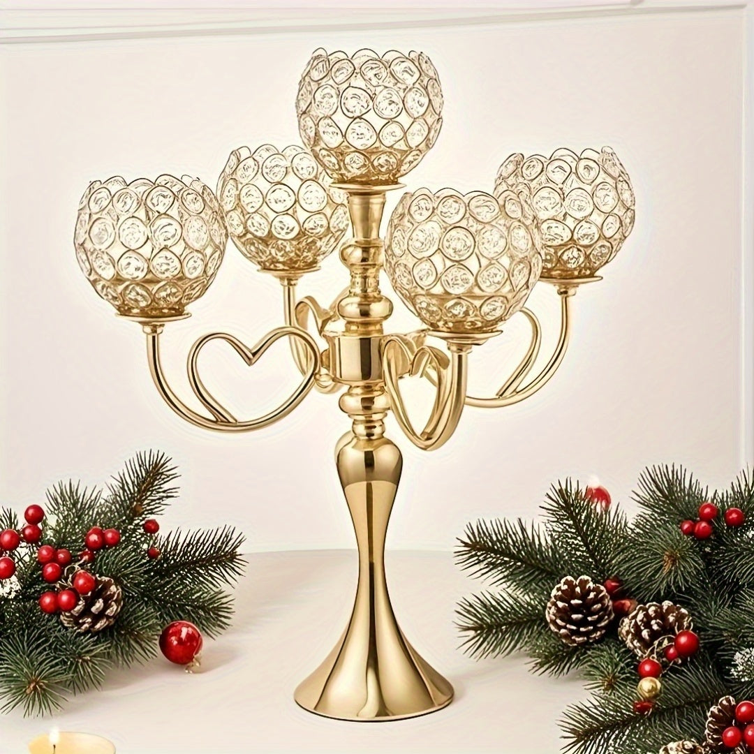 1pc Elegant 5-Arm Metal Candle Holder with Heart Design - Romantic Golden & Silver Finish, Perfect for Weddings, Christmas, Graduations, Birthdays