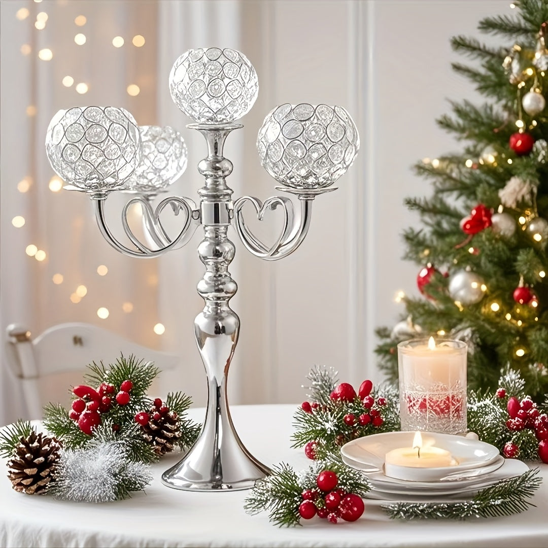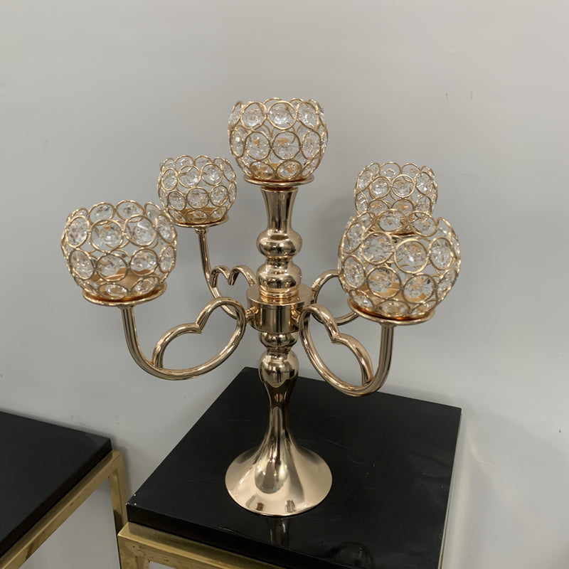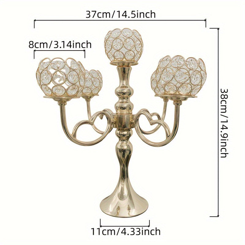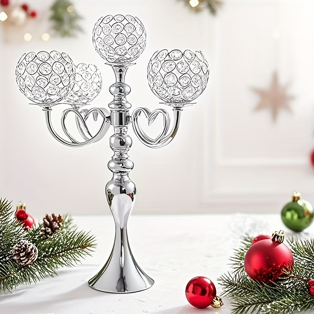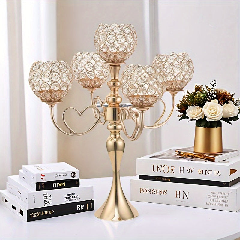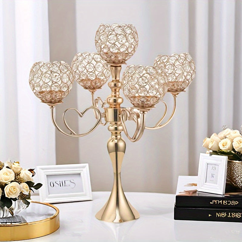 1pc Elegant 5-Arm Metal Candle Holder with Heart Design - Romantic Golden & Silver Finish, Perfect for Weddings, Christmas, Graduations, Birthdays