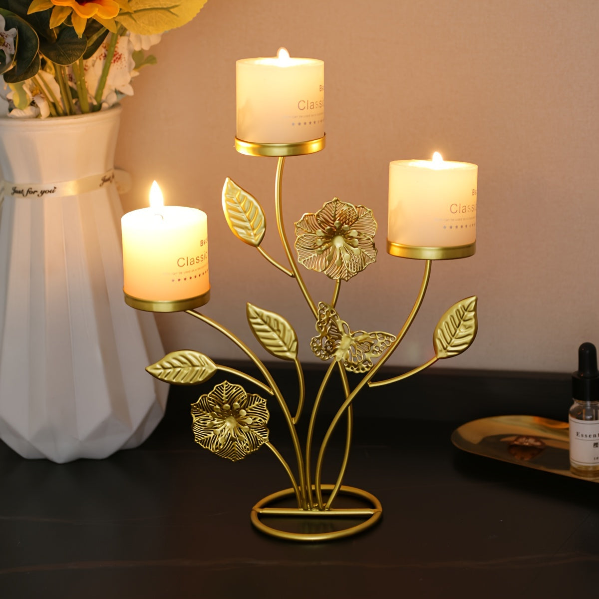 1pc Elegant Golden Metal Candle Holder, Creative Tabletop Decorative Candle Stand for Home, Dining