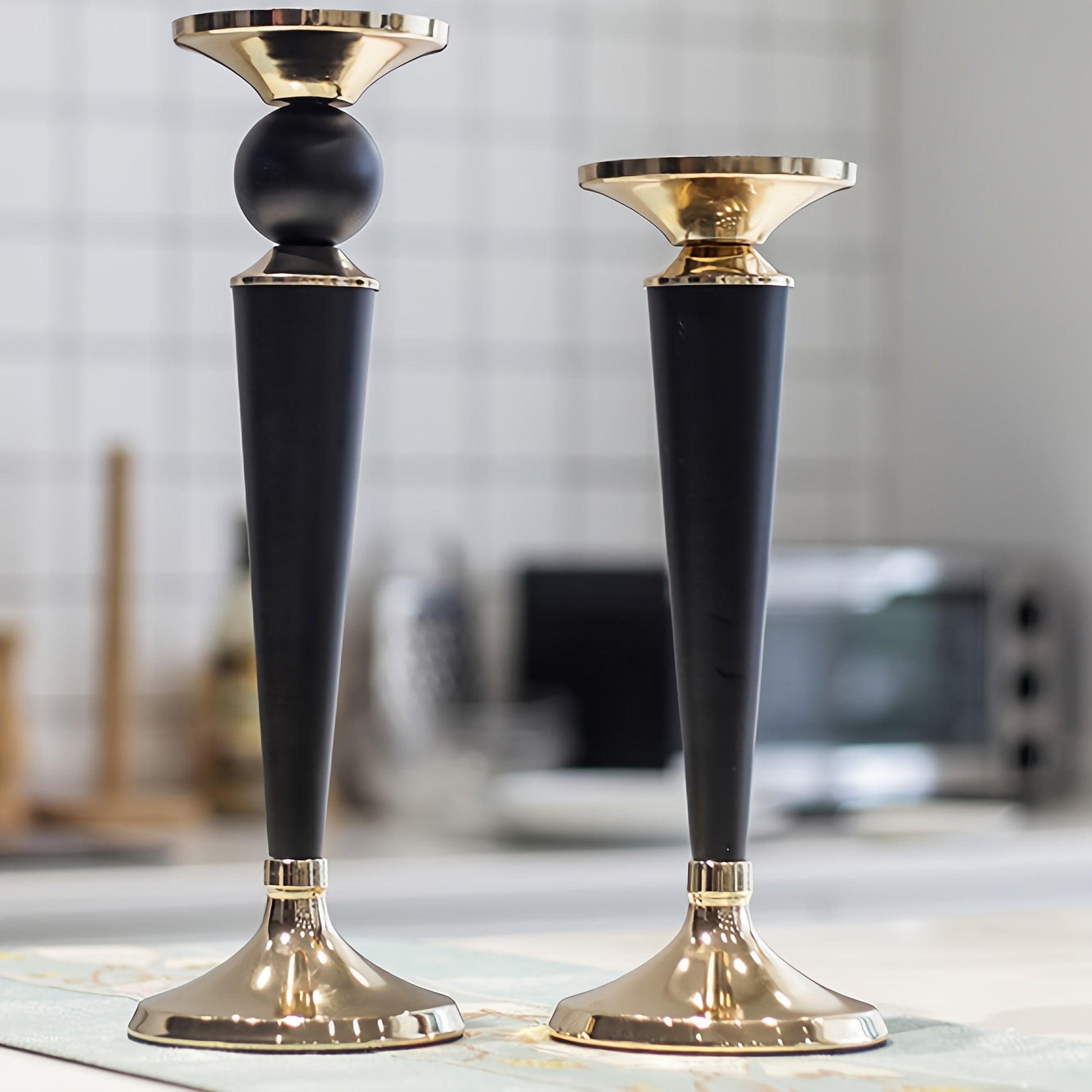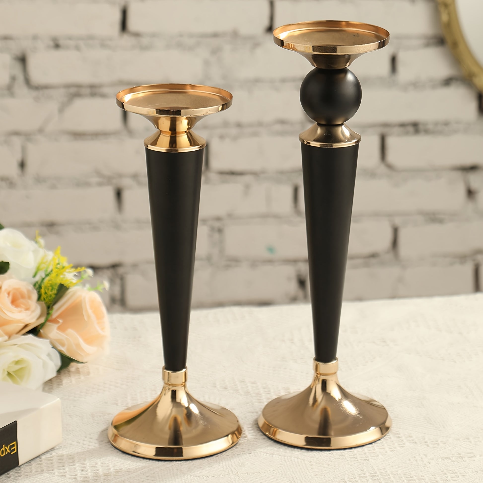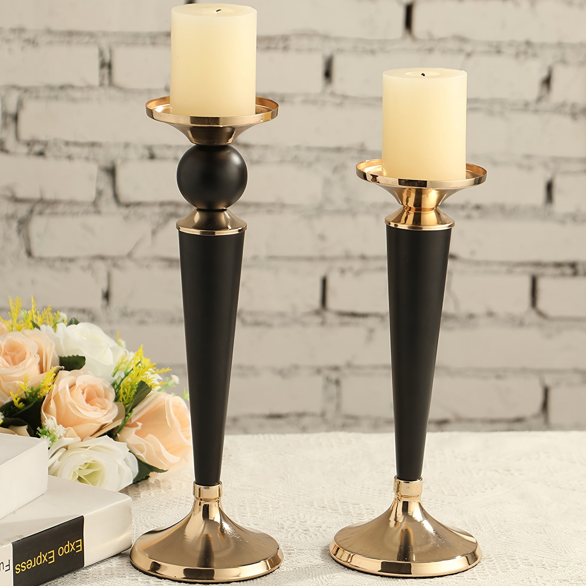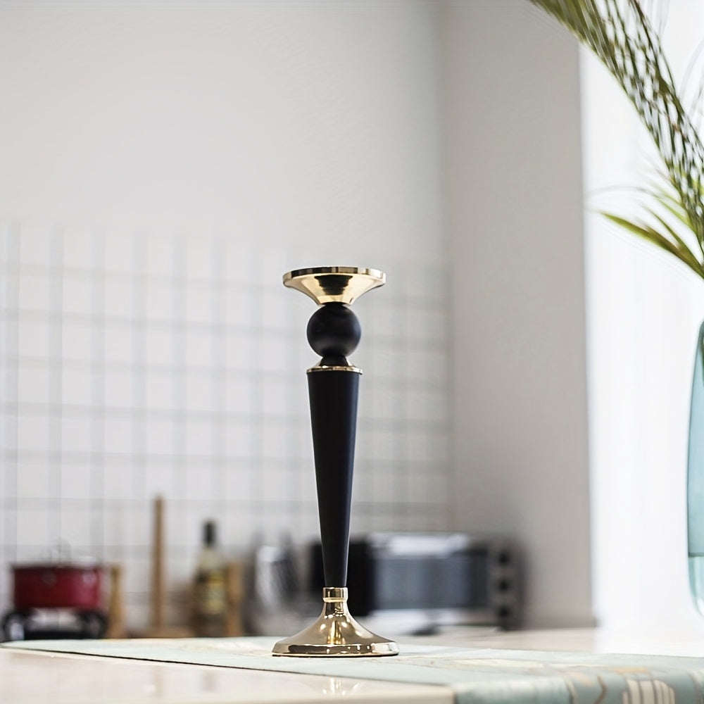 1pc European retro metal candlestick, a European light luxury metal Roman column candlestick, a black and Golden metal decorative candlestick