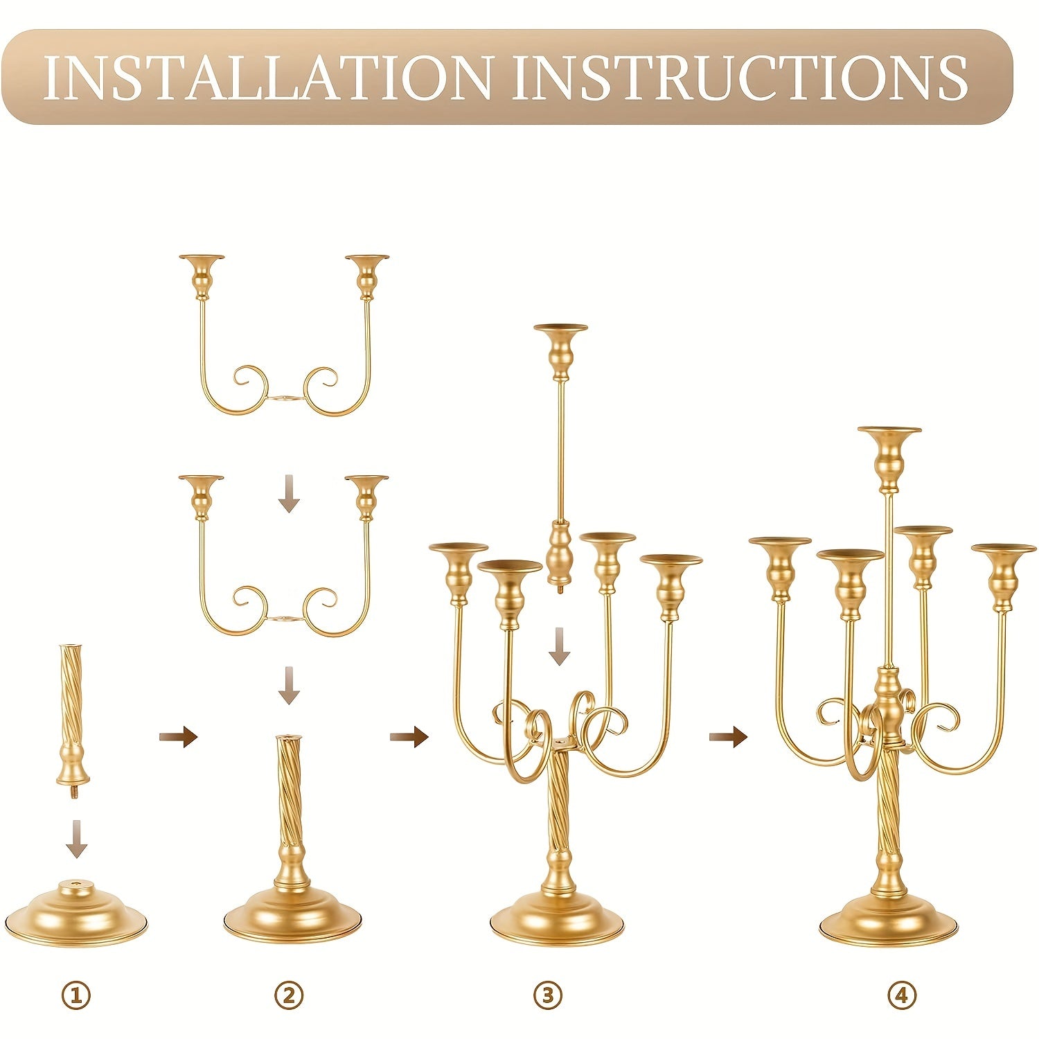 2pcs 50.04cm Gold Candelabra Centerpieces for Tables, Metal Tall Candle Holder for Taper Candles, 5 Arm Candlestick Holder for Wedding Centerpiece Decor Party Event Reception Decoration