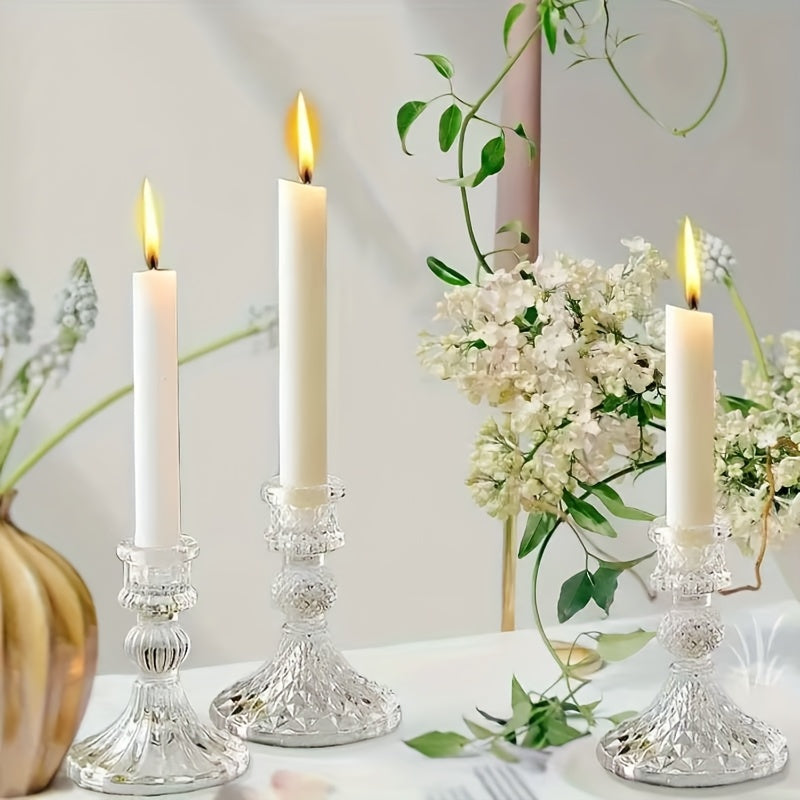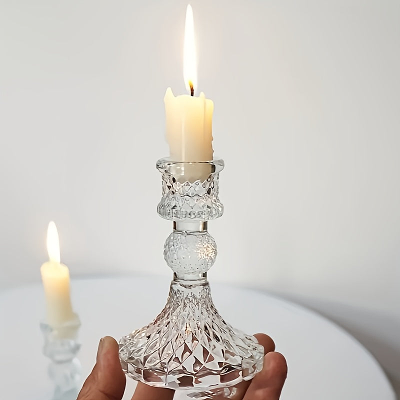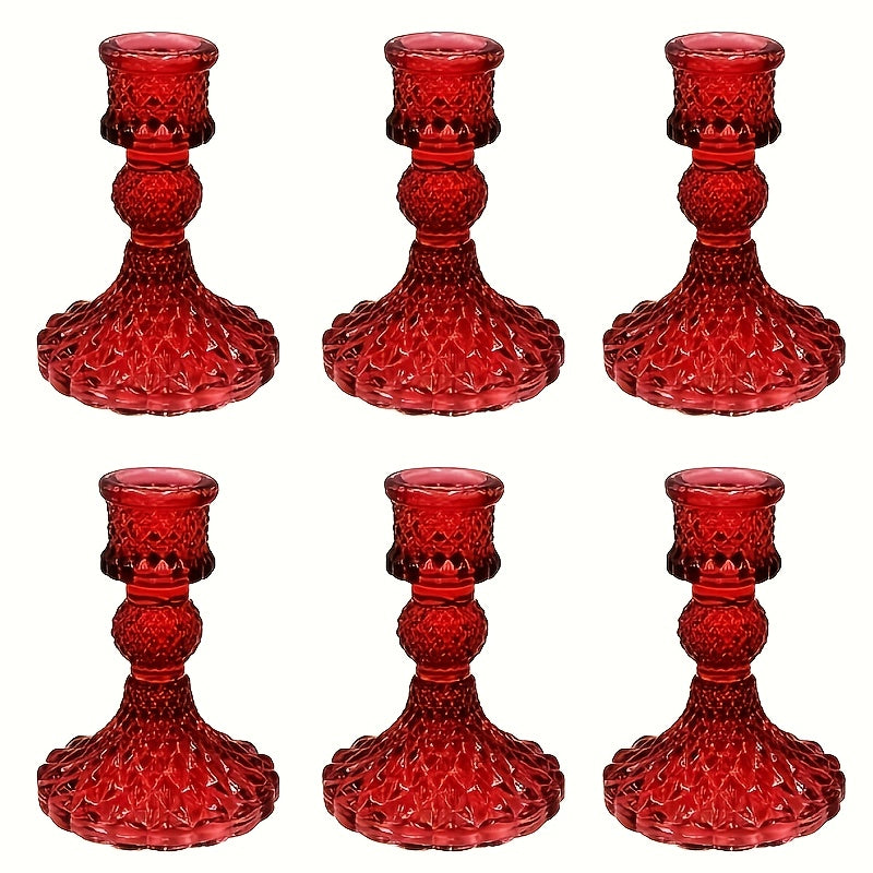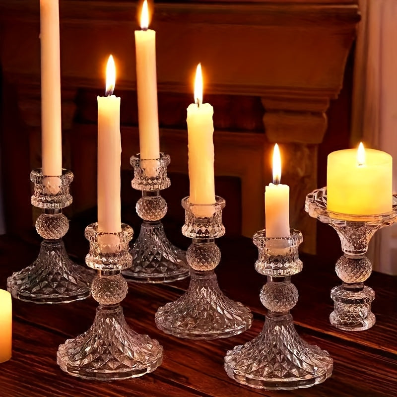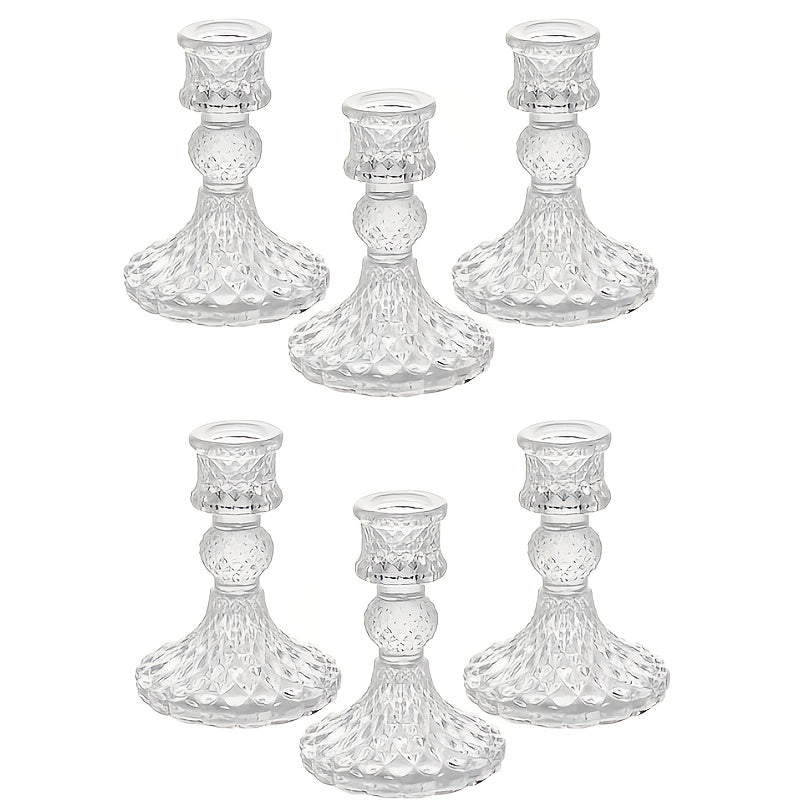 6pcs Elegant Polished Crystal Glass Candle Holders - Modern Tabletop Decor for Dining Room, Elegant Small Candle Holders with Decorative Accents, Candle Holders for Home Decor