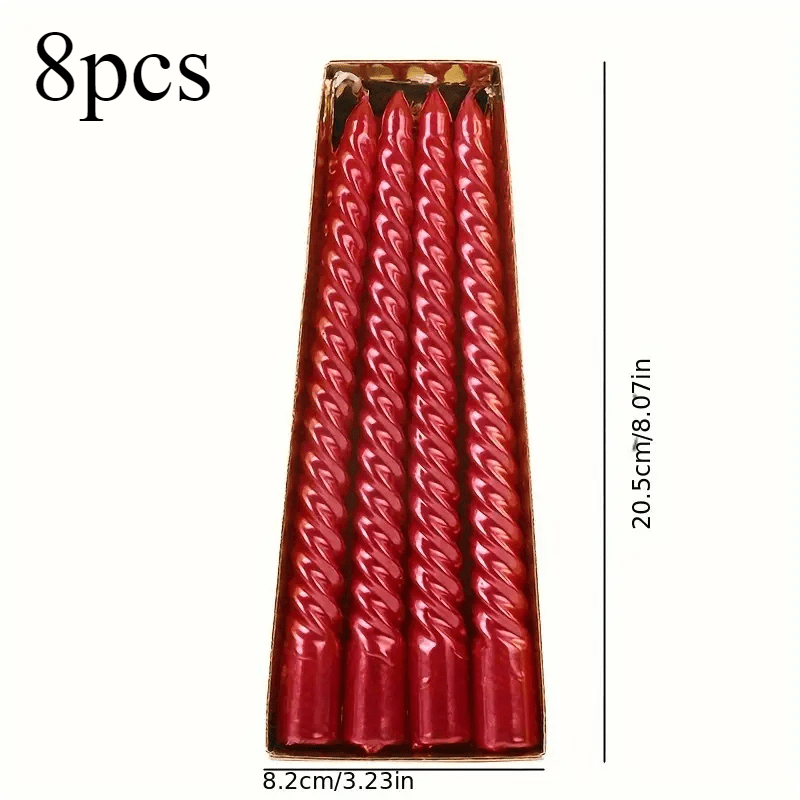 8 European-style long-stemmed colored threaded candles, perfect for romantic dinners at home, weddings, birthdays, Christmas and Valentine's Day scenes
