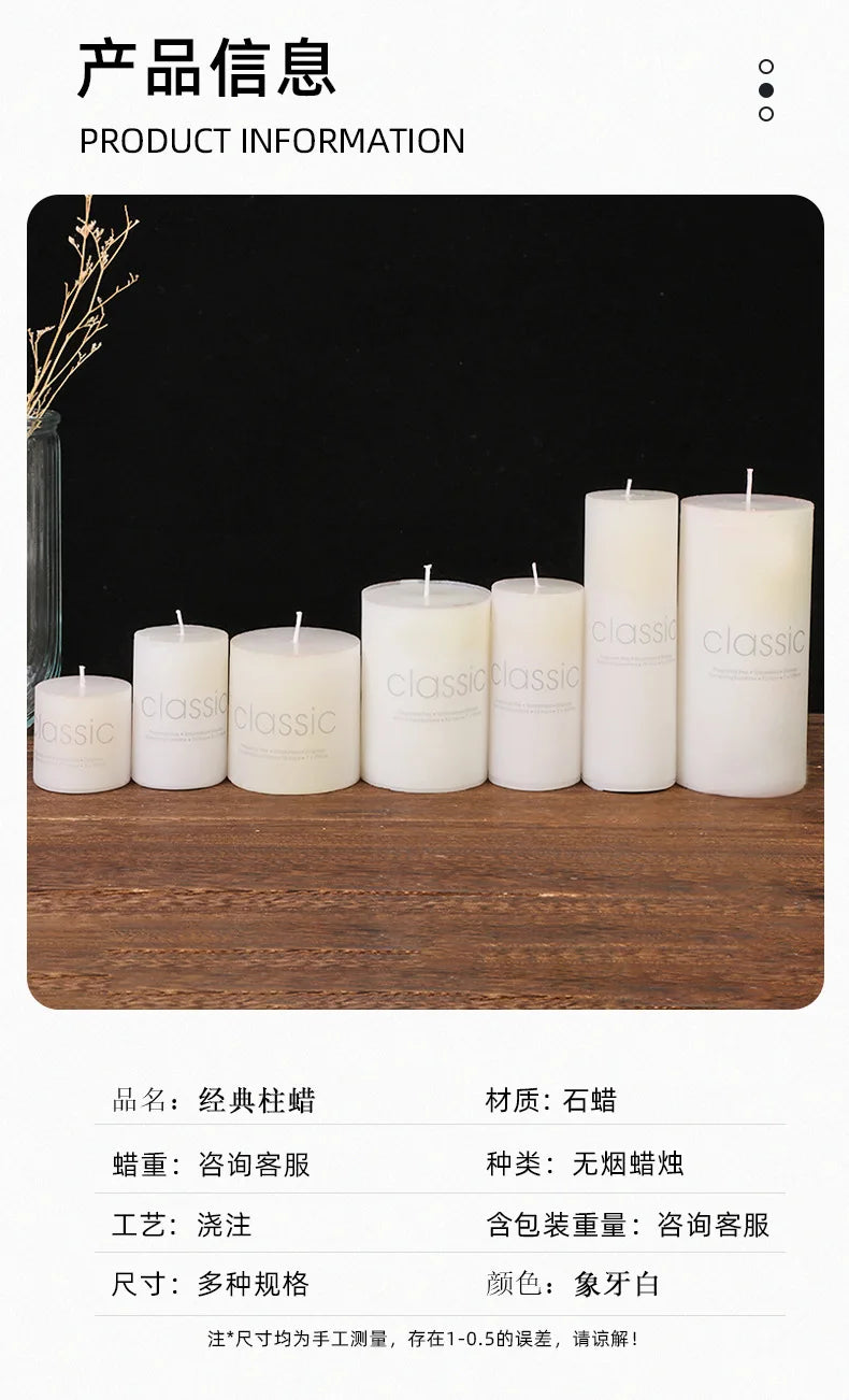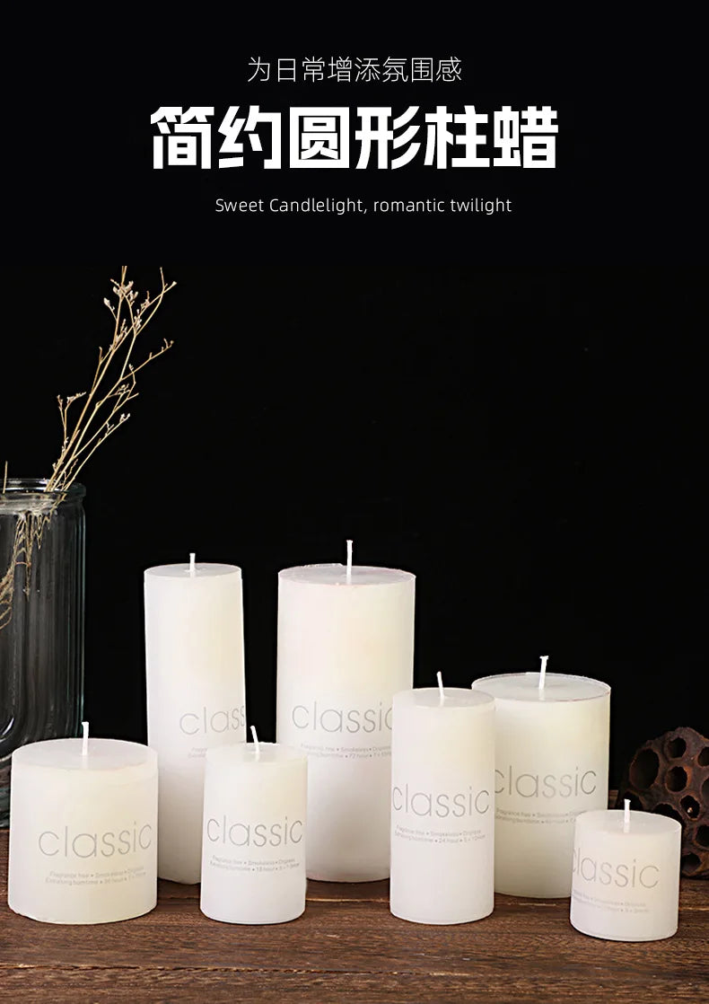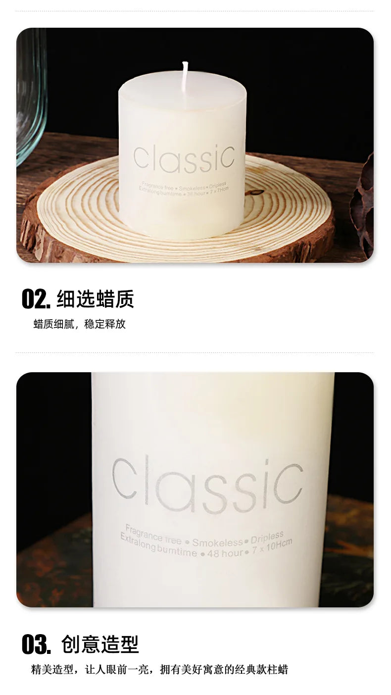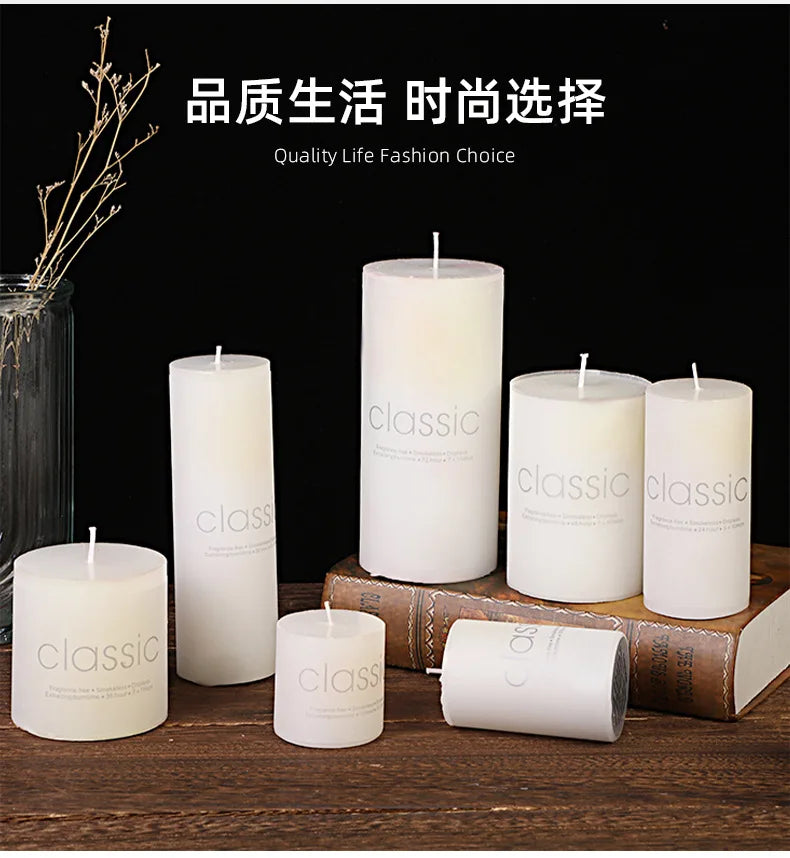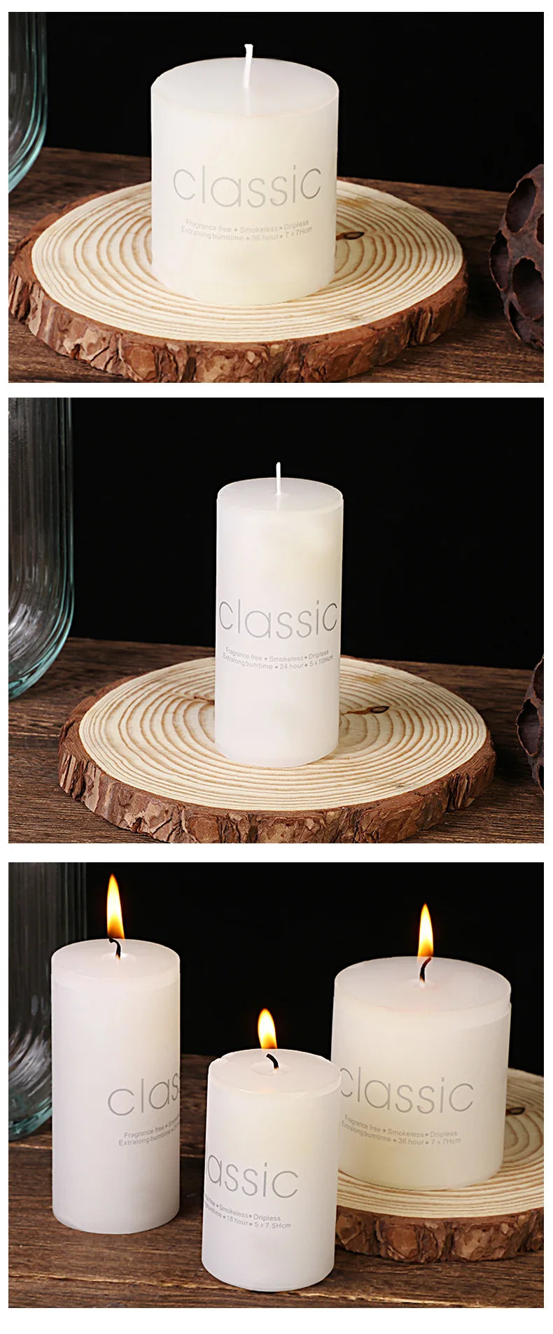 Classic European Ivory White Large Cylinder Candle Smokeless Tasteless Romantic