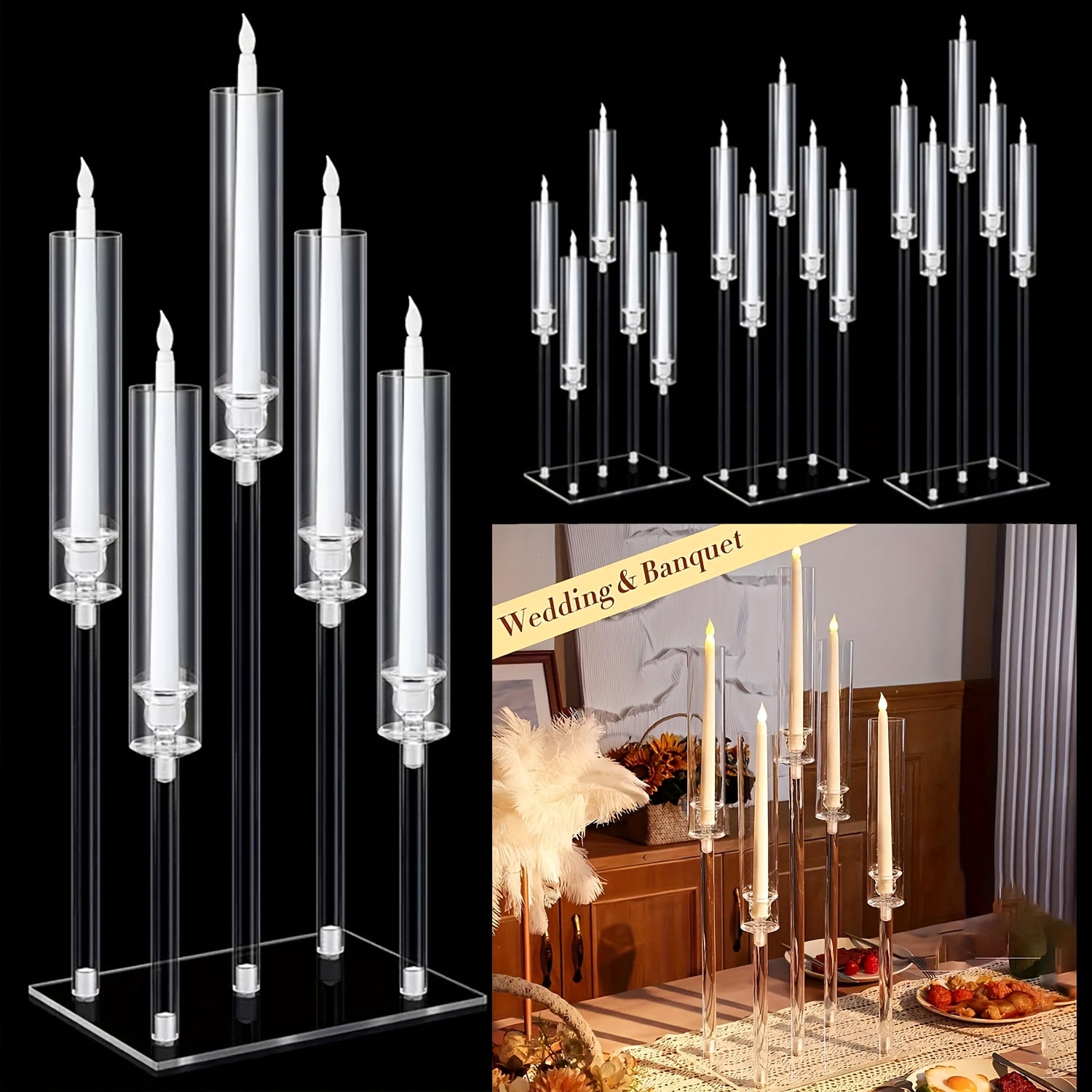 Elegant 5-Arm Square Acrylic Candle Holder - Perfect for Weddings, Valentine's Day, and Graduation Parties