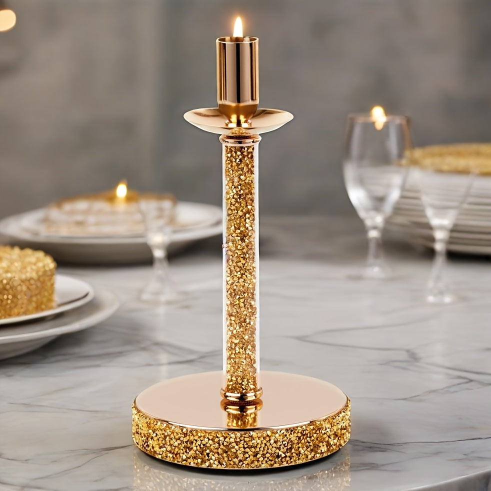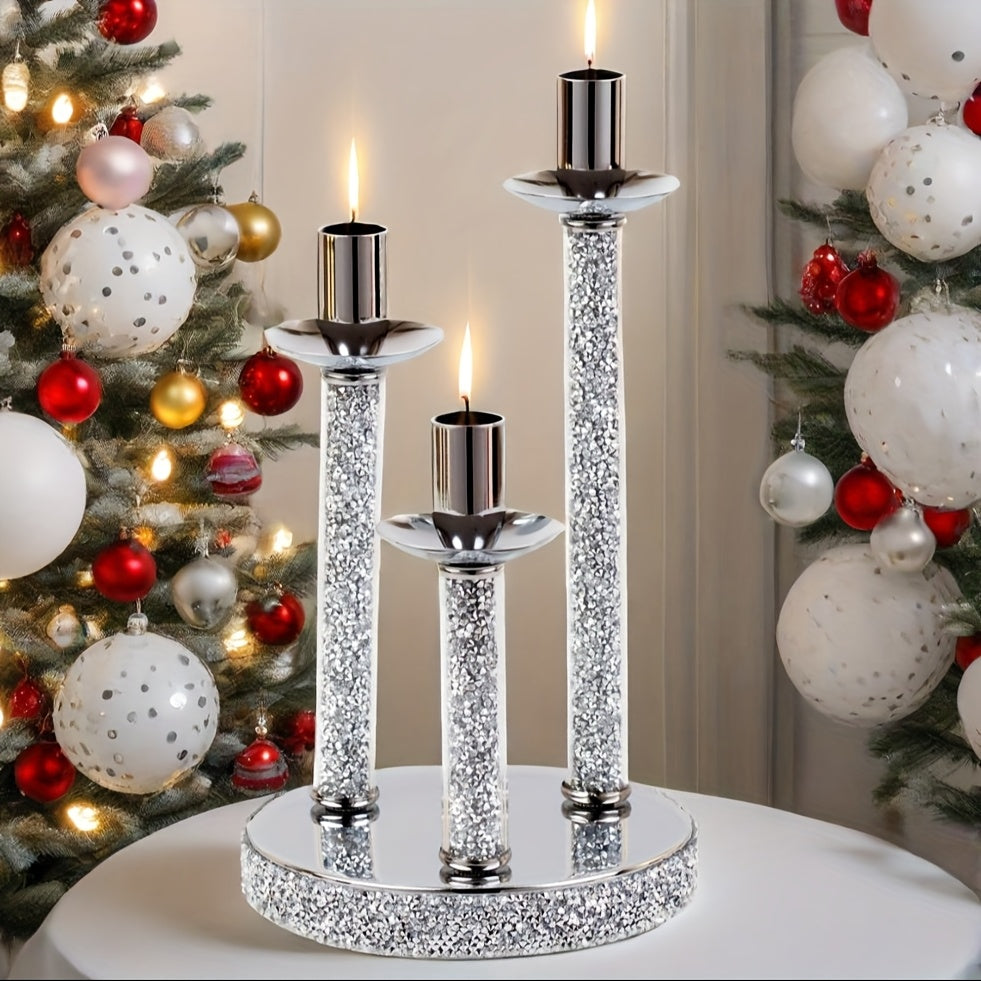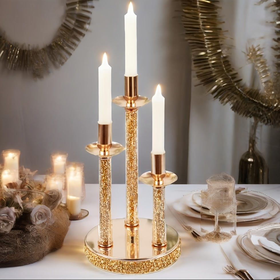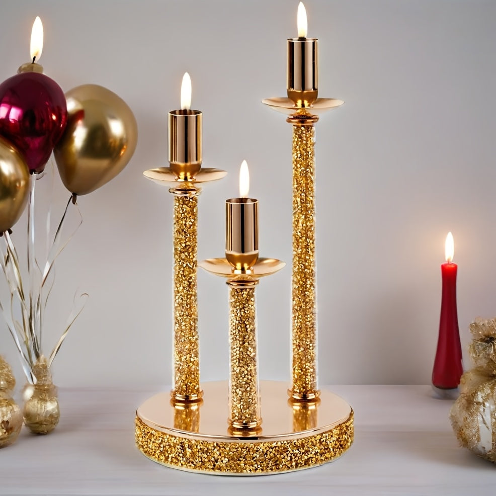 Luxury 3-Arm Metal Candle Holder with Golden Glitter Accents - Oil-Rubbed Finish Tabletop Decor