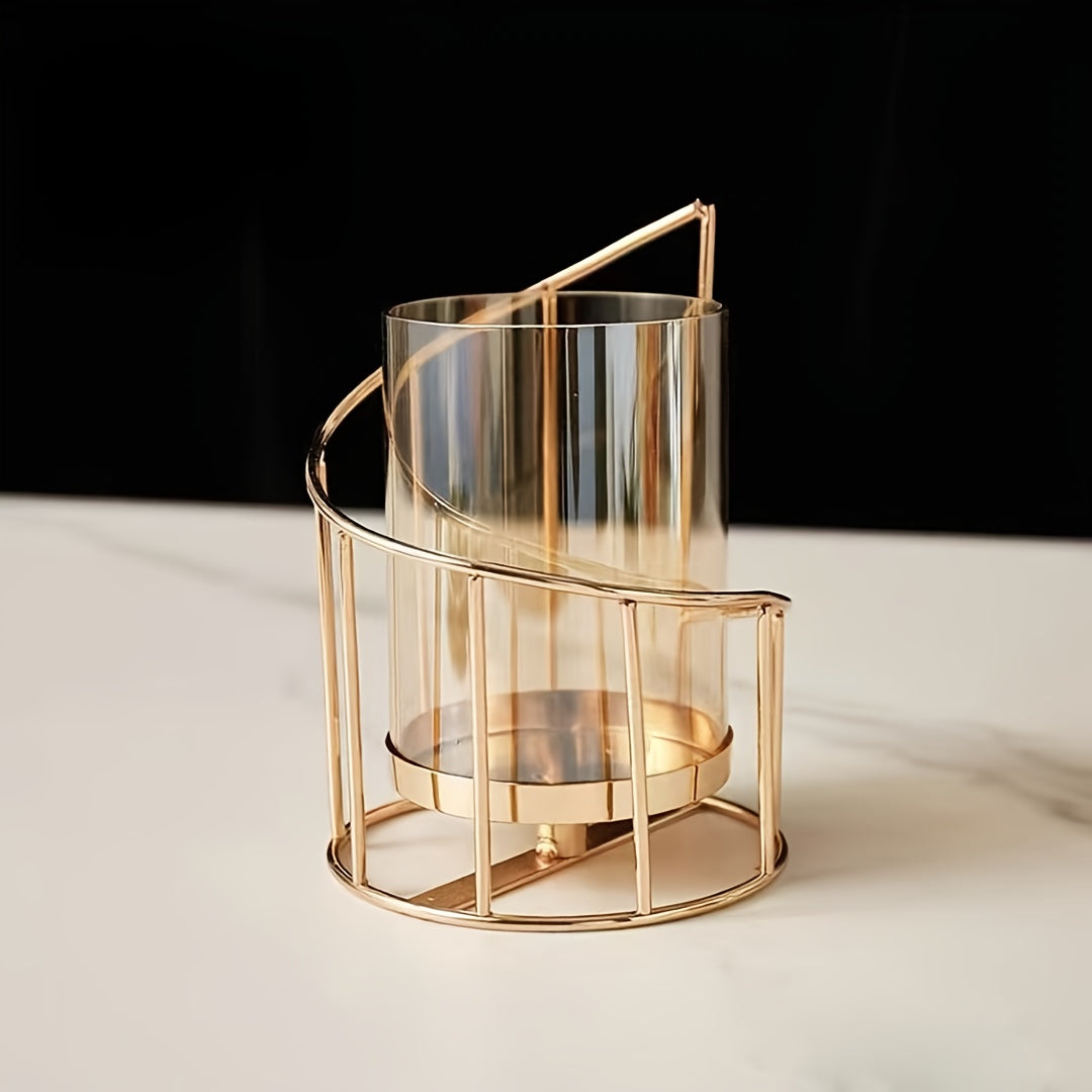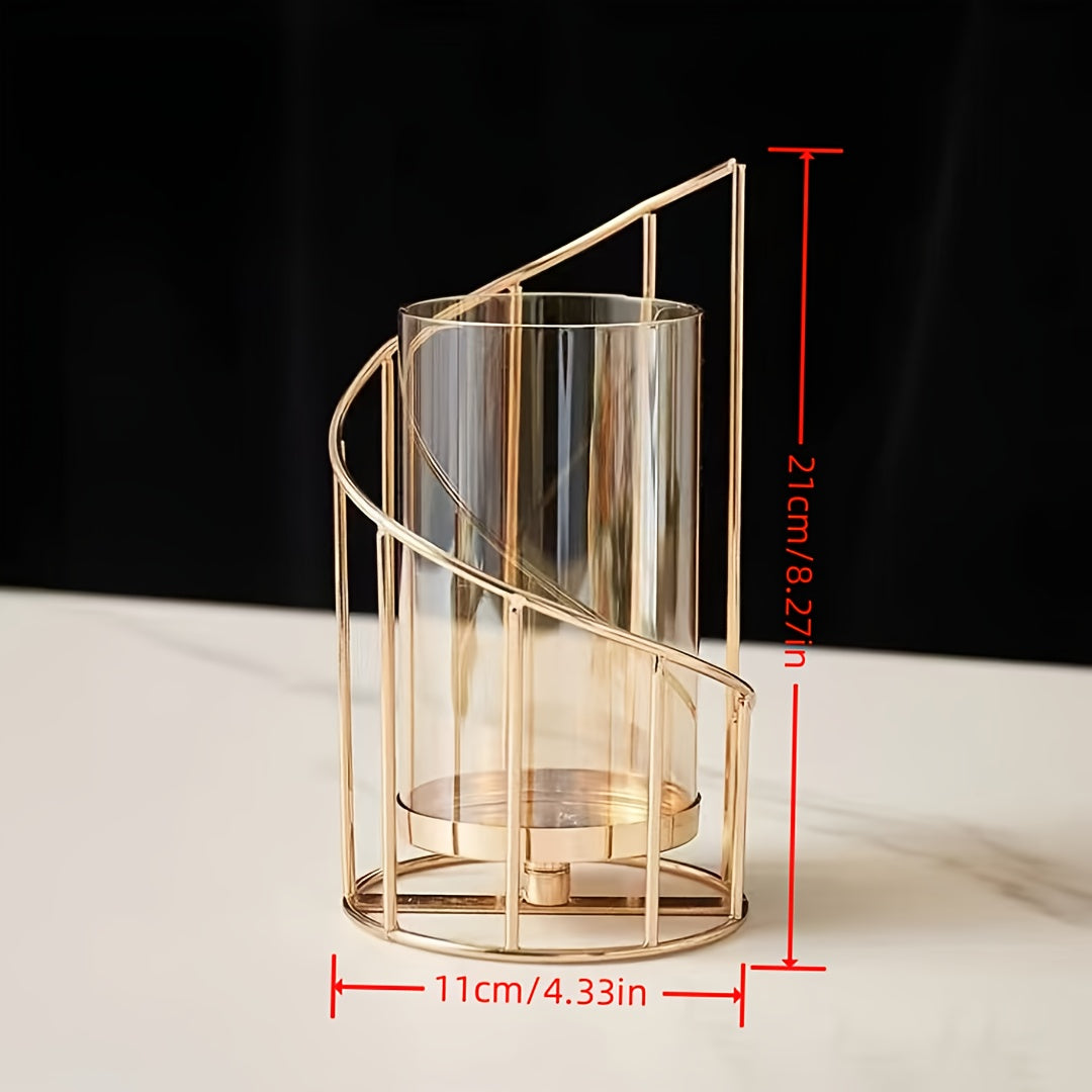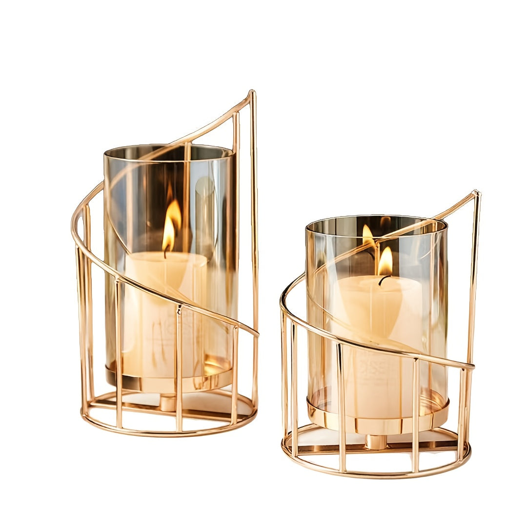 Modern Golden Metal Candle Holders with Intricate Cut-Out Design - Elegant Tabletop Decor for Weddings, Parties, and Home Living Room